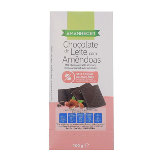 CHOCOLATE BARRA AMANHECER SIN AZUCAR LECHE Y ALMENDRA 100G