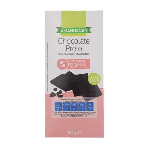 Chocolate Barra Amanhecer Sin Azucar 100g 70%