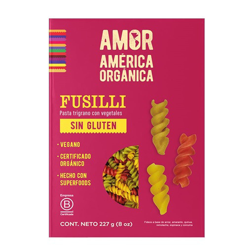Pasta Fusilli Amor América Orgánica Trigrano Sin Gluten 227g