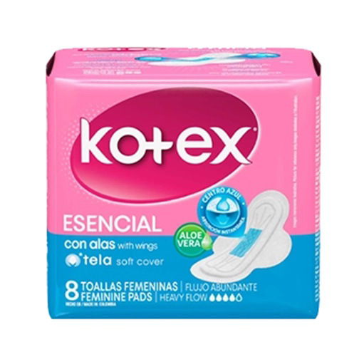 Toalla Sanitaria Tela Esencial Con Alas Kotex 8 Und